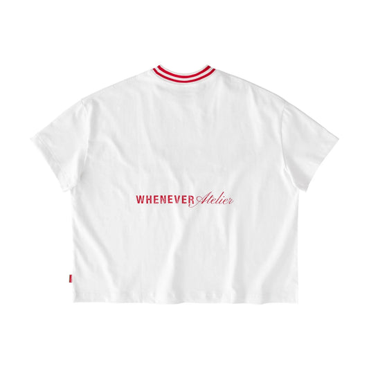 “WHENEVER” SPRAY STRIPED NECK TEE WHITE RED