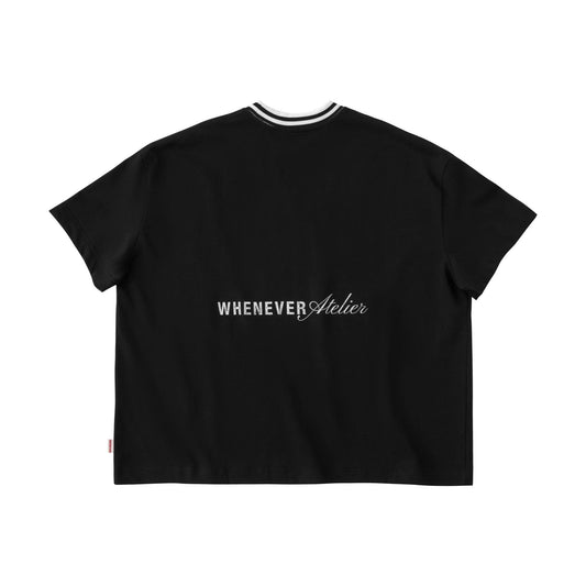 “WHENEVER” SPRAY STRIPED NECK TEE BLACK / 01