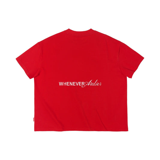“WHENEVER” Logo-Embroidered Cotton T-Shirt/ RED
